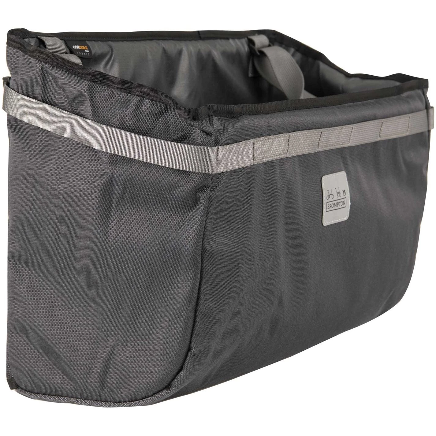 About the Brompton Borough Basket BagBrompton introduces Borough Basket L in Dark Grey; the model 2020 bag is a true all-rounder, ideal for a trip to the shops and your daily commute.This basket bag is made using the sturdiest of fabrics and hardware for long lasting performance and durability. It still features the innovative folding brace and carry system with new added features – The added webbing loops on the outside allows you to attach extra items. This bag has stronger cam buckles and a new reflective logo badge to help keep you safe and seen. The Basket is compatible with ALL Brompton handlebar types.