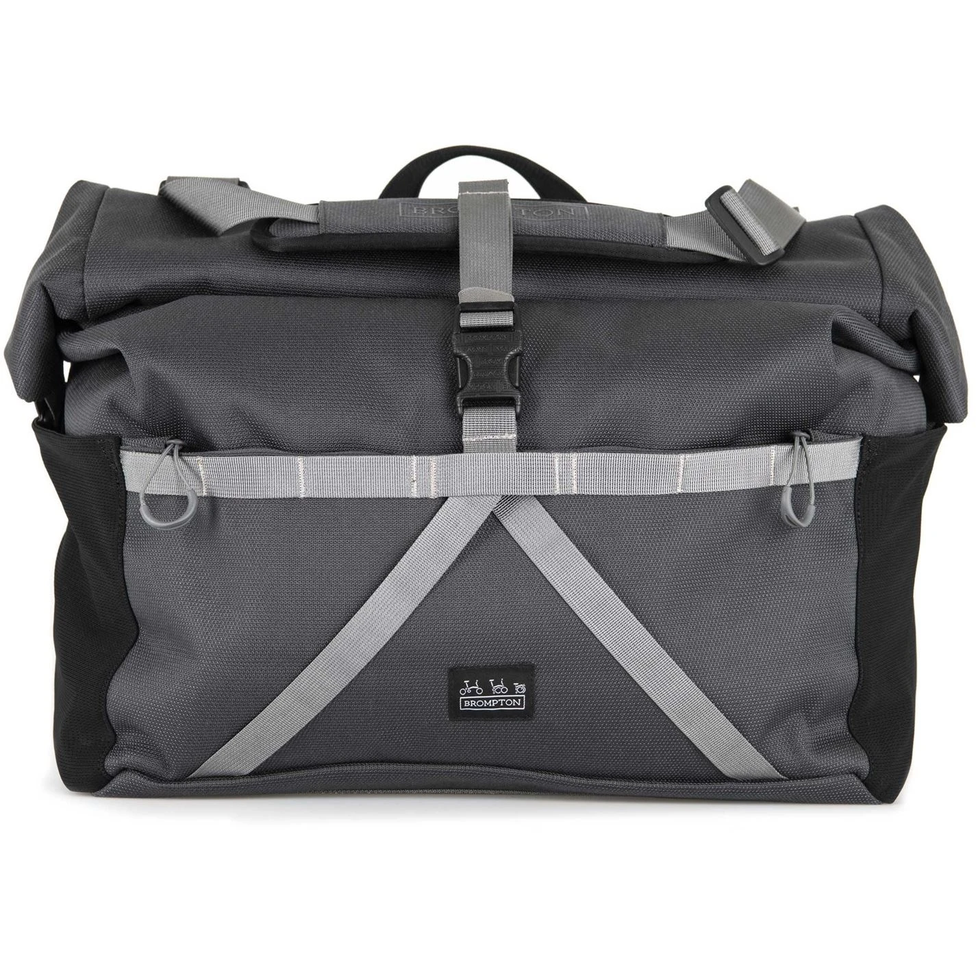 About the Brompton Borough Roll Top BagBrompton introduces Borough L in Dark Grey; the model 2020 bag is a fresh take on the classic roll top T-bag and is created with the same level of care and attention as our specialised bikes. The clever design of our bags focuses on functionality and performance, making it the perfect companion for all kinds of journeys.Robust weatherproof materials and multiple storage compartments help to keep you organised and make this your go-to bag; whatever your ride demands. New functional features include an adjustable external load carry strap – great for helmets, jackets, or other large items. Redesigned interiors now include both laptop and water bottle sleeves, allowing the user more flexible usage solutions. This bag now features a rubberised webbing handle, making it compatible with ALL Brompton handlebar types. This bag is great for weekend adventures.Key Features