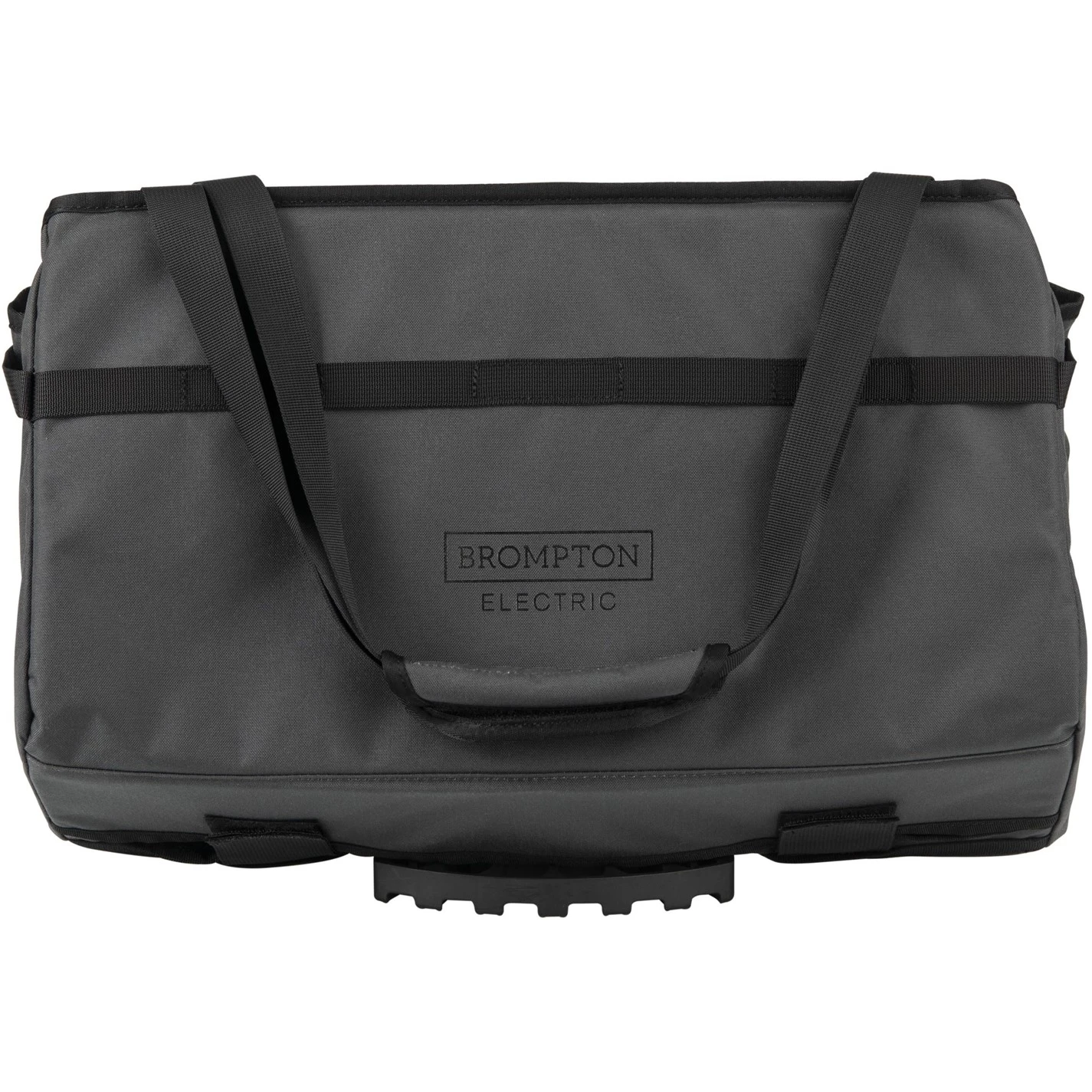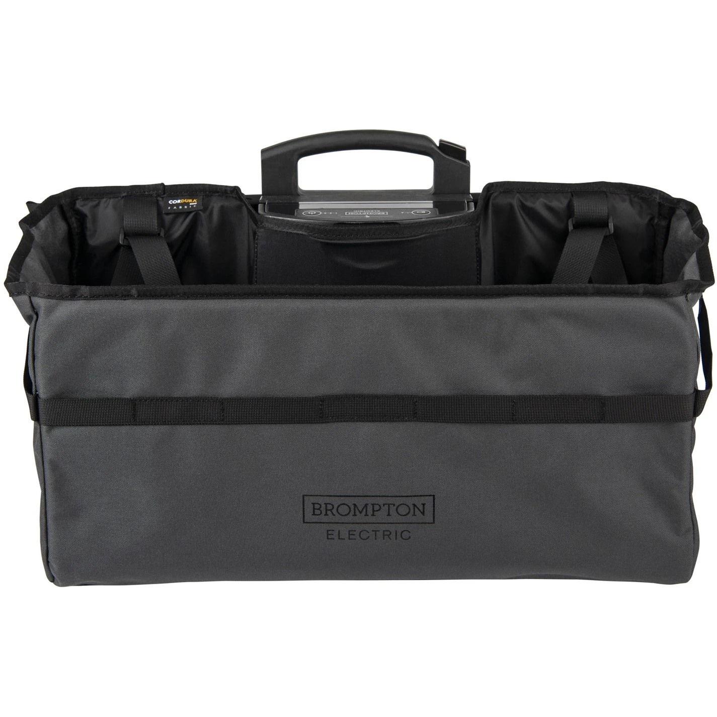 We’ve adapted our classic folding Basket Bag to work with the Brompton Electric battery and Front Carrier Block system Whilst the dimensions differ slightly, we’ve ensured there’s still a large load capacity for all your gear and the internal aluminium brace and side cinches allow you to quickly adjust the size of the bag to your needs Made from premium durable materials, with additional features including an internal zippered pocket and external webbing loops that allow you to attach additional items The E basket is a versatile piece of kit for all your everyday adventures Compatible with all Brompton Electric models.
