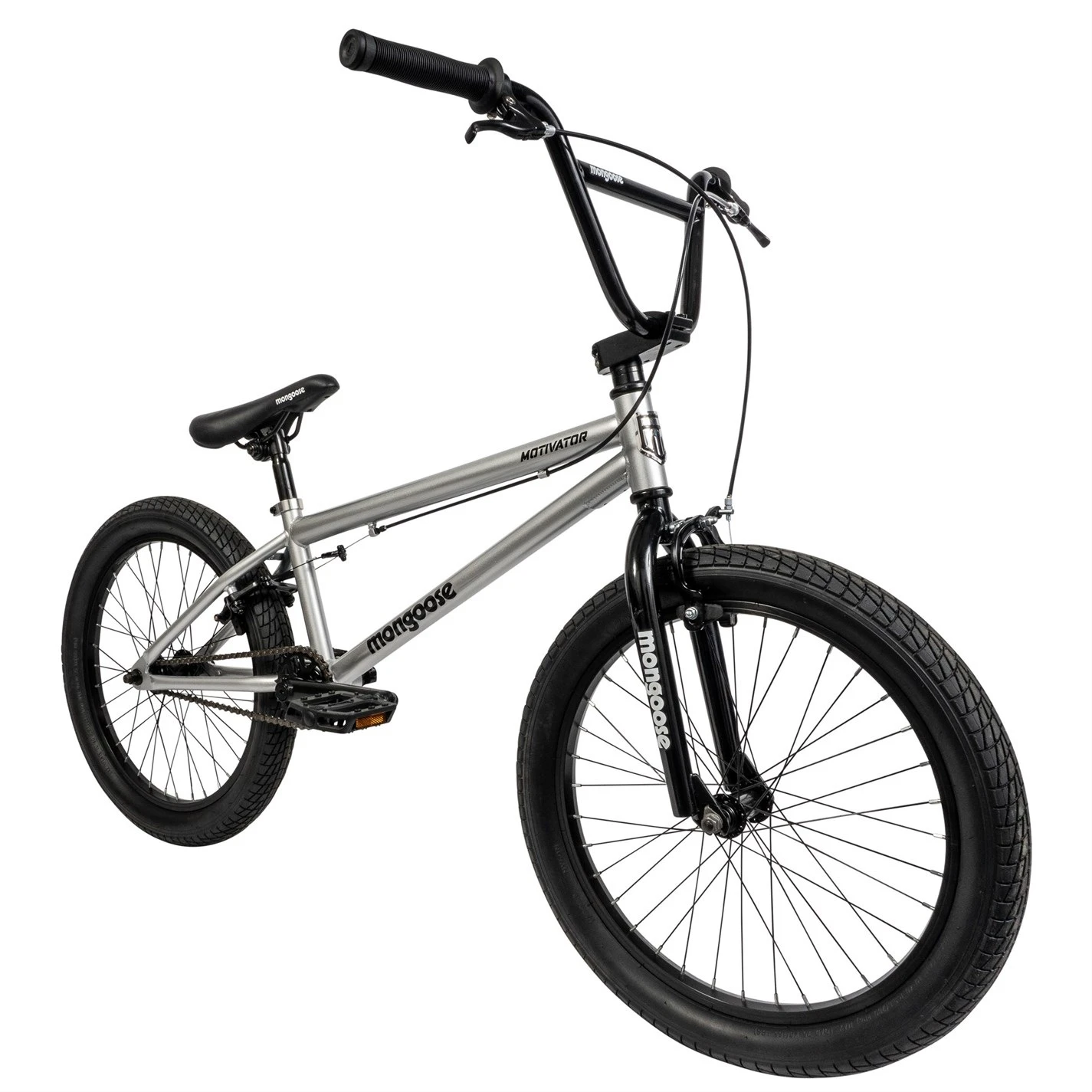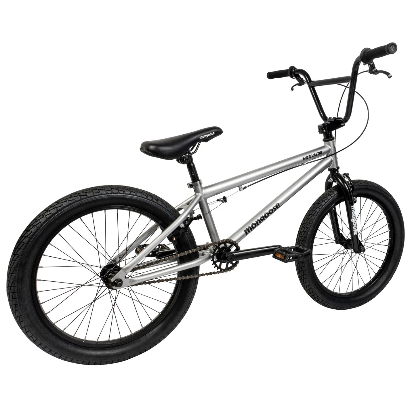 Turn heads around the bike park with the Mongoose Motivator freestyle bike! This lightweight and durable BMX bike features 25 x 9T cassette hub micro gearing just like many of your favourite pros ride. Also features an 8-spline BB, 20 x 2.3 wide tires, and 3-piece crankset.