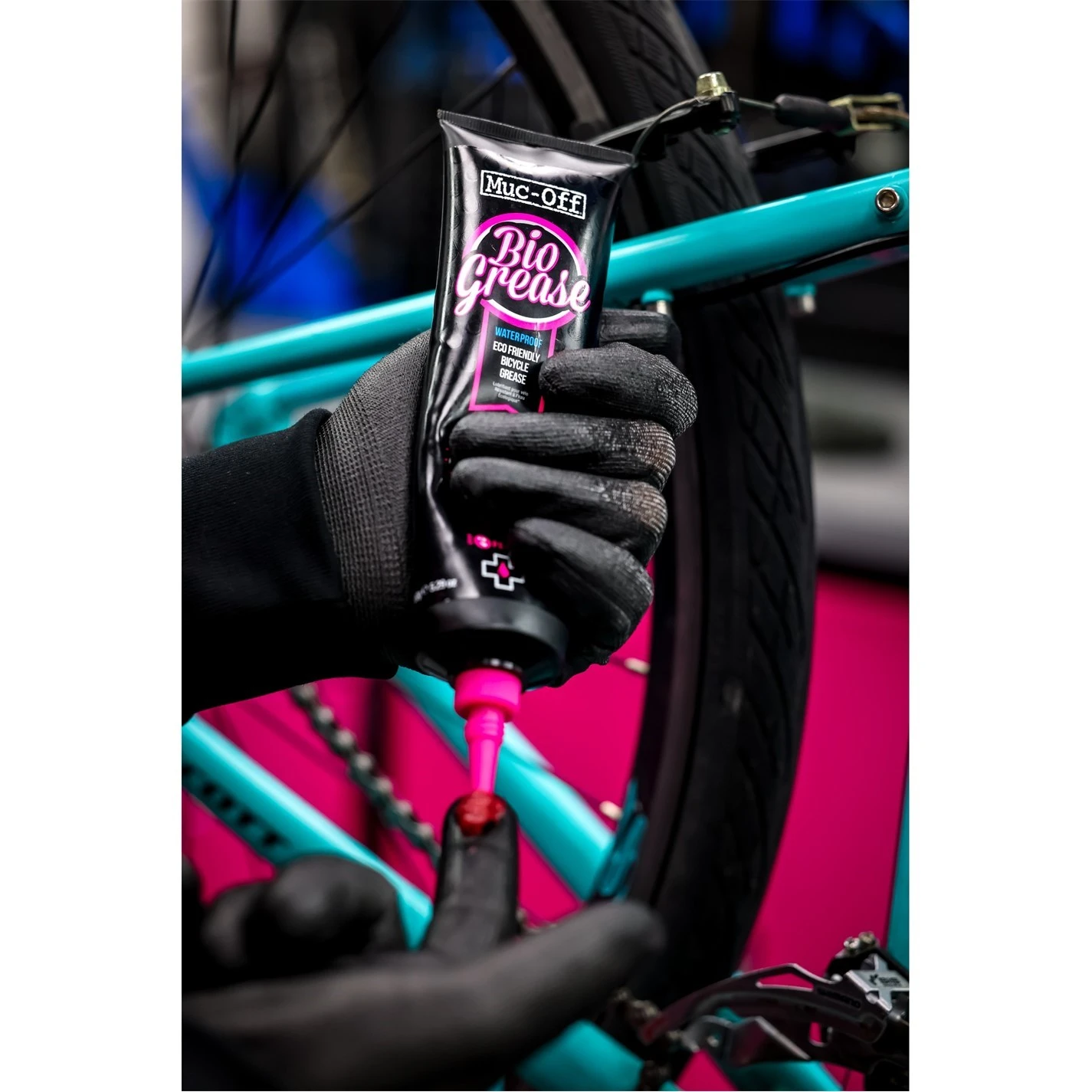 The Muc-Off Bio Grease is fresh out the bowels of Muc-Off Research and Development team. Designed specifically for bicycle use, Muc-Off Bio Grease possesses a unique formula that prevents corrosion and water ingress so your bike’s components will last long into the future! Use Muc-Off Bio Grease to increase your performance, and ensure every ride will be smoother than your last. Muc-Off Biodegradable Bicycle Grease is specifically blended for the unique ‘low speed’ applications found on bicycle parts where reducing friction is paramount. This premium formulation is based on renewable resources, and has a combination of extreme pressure lubricity additives and natural ‘slip’ giving it unrivalled performance in its class!