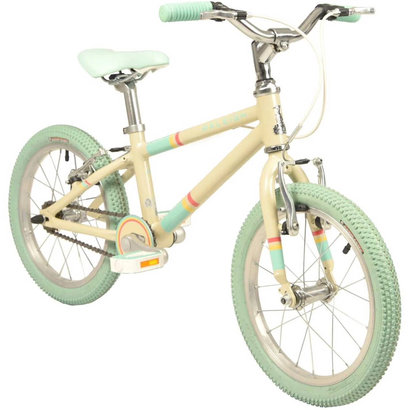 The fun colour scheme and classic cream frame make this a stand out piece, and results in a bike that is as unique as the rider.