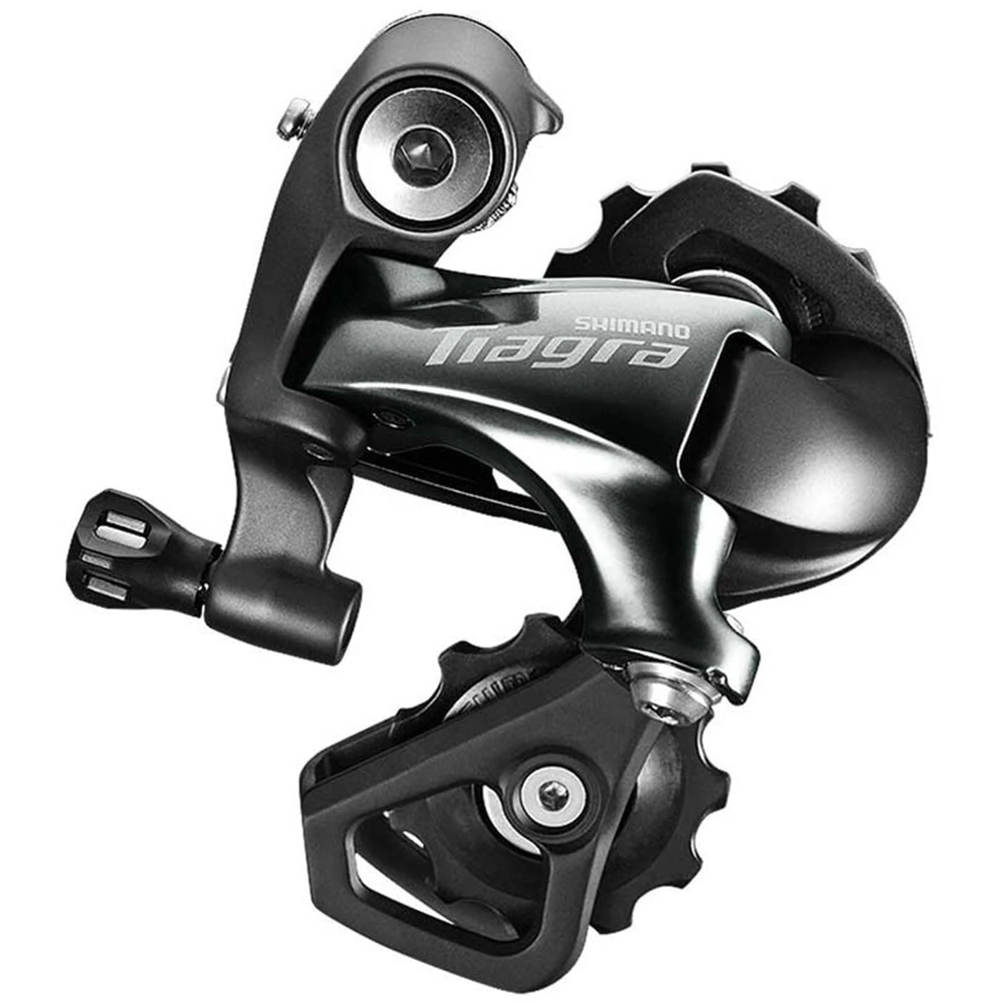 The Tiagra 4700 10 Speed Rear Derailleur from Shimano gives high level performance at a low price, making it accessible to all riders. This rear mech offers pro-level features such as advanced light action, which gives you low friction shifting both up and down the block and wide link design which increases rigidity and service life. The alloy body and outer link leads to lower weight without compromising it’s strength and durability. The jockey wheels are both 11 tooth, to give reduced wear and chain noise and there is two fluorine-coated link pin bushings which also help give low-friction performance. Available in GS (mid/long- cage) or SS (short cage), Black only.