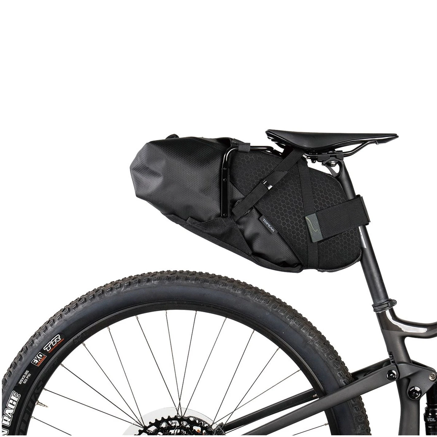 A large capacity seat bag specifically designed for bikepackers wanting a streamlined way to carry gear without the need for a rear rack. The reinforced, anti-slip/scratch fabric protects the saddle while the advanced mounting system enables convenient and secure mounting to seatpost and saddle rails. Easy access waterproof carry bag and built-in air release purge valve keeps bag compact and dry while you’re on your next adventure.
