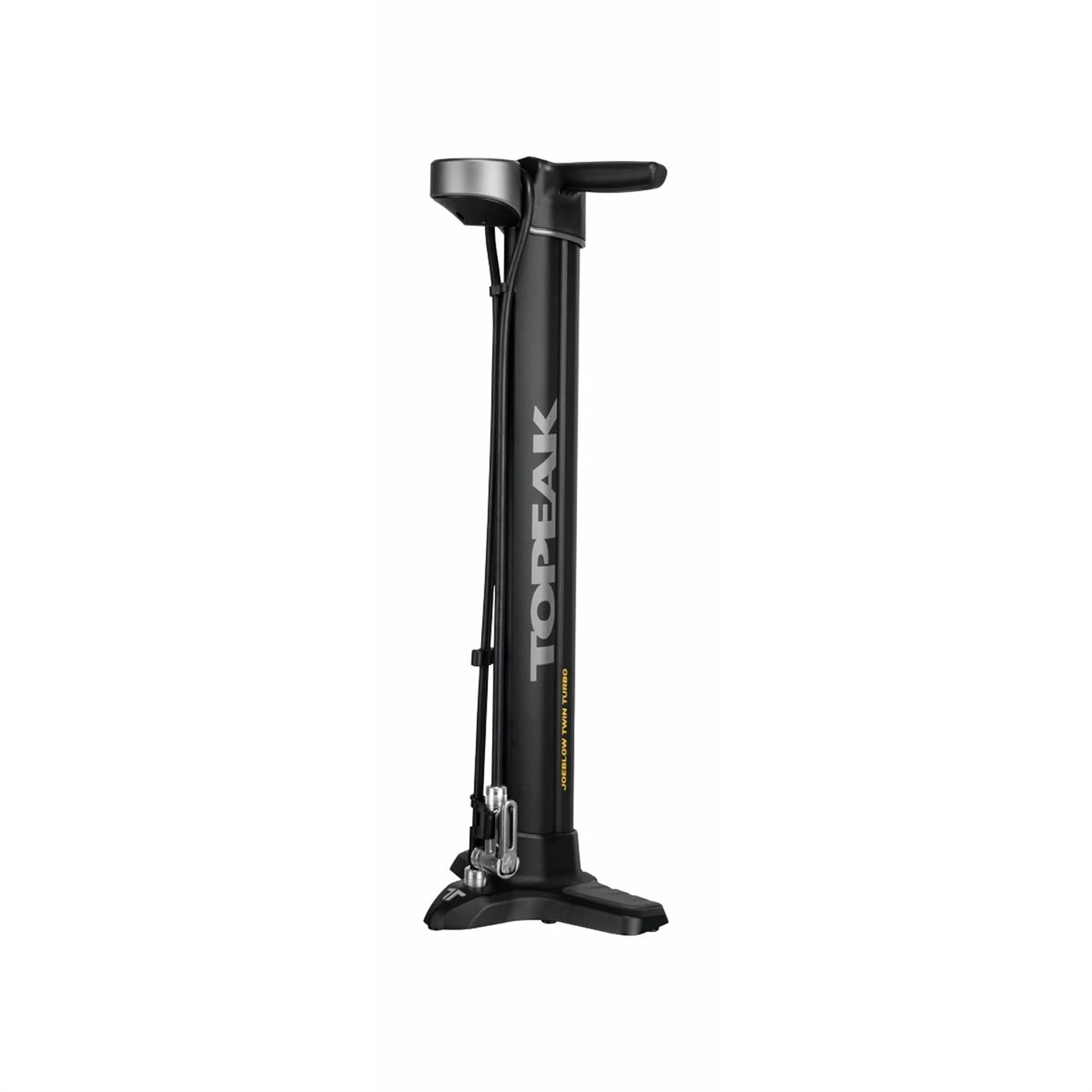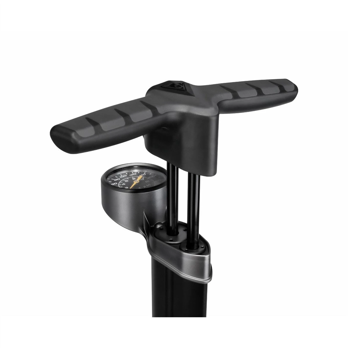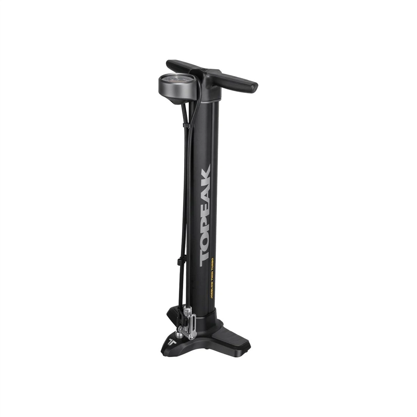Introducing Topeak’s TurboBoost technology. This technology utilizes the pull and push of every stroke by transferring air between its two barrels. Pulling the handle up moves a massive amount of air volume from the larger barrel into the smaller barrel. Pushing the handle down compresses the air in the smaller barrel into high pressure output that fills road tires with high pressure, or MTB tires with large volume.