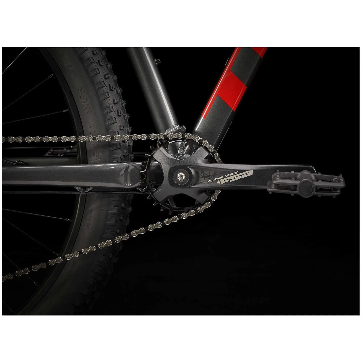 - Crankset: FSA Alpha Drive, 28T steel ring, Boost